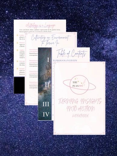 Your custom workbook includes an overview of key insights from your brith chart, reflection questions, and activities to help you work through each section to create your own Plan